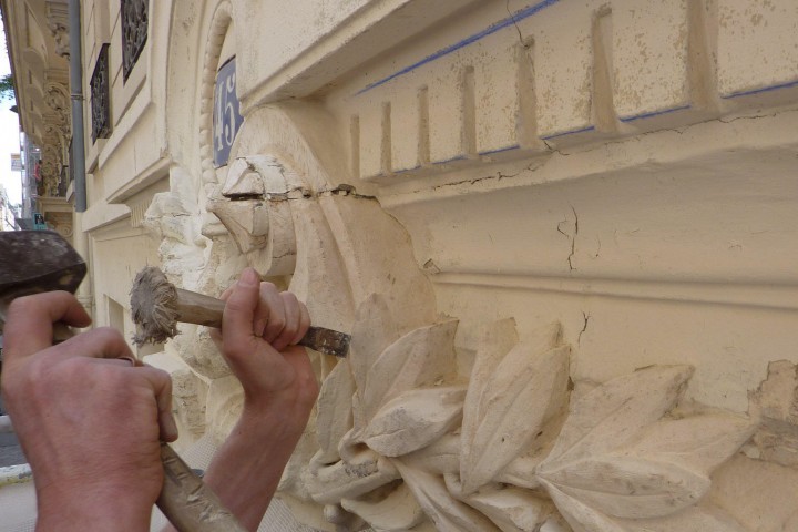 Maçon , tailleur de pierre , cryogommage , décontamination de façades contenant du plomb nettoyage de façades